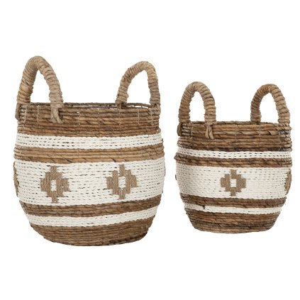 Ručne pletená a ručne maľovaná sada ratanových košov pozostávajúca z troch rôznych veľkostí košov. Koše sa dodávajú v súpravách po troch kusoch. Praktická organizačná pomôcka na uloženie oblečenia a textilu alebo napríklad časopisov a fotografií.