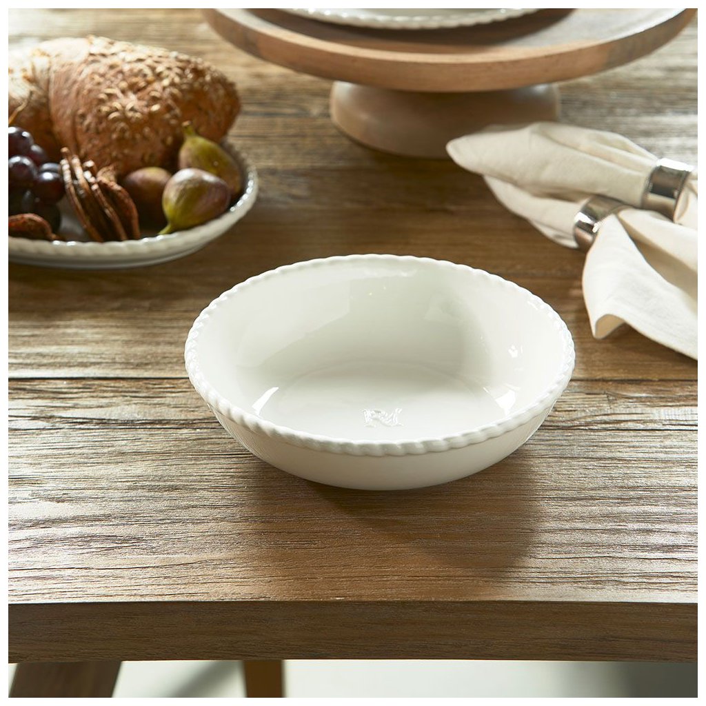 Dodajte svojmu jedálenskému stolu trochu elegancie s krásnou servírovacou miskou Elegant Twist. Opletený okraj dodáva tejto miske hravý a sofistikovaný vzhľad. Logo RM Monogram je jemne vyrazené, vďaka čomu je miska mimoriadne štýlová. Ideálna na príjemnú večeru s priateľmi a rodinou. Tento porcelánový tanier má priemer 24 cm. Doplňte svoj zážitok zo stolovania krásnym sortimentom Elegant Twist.