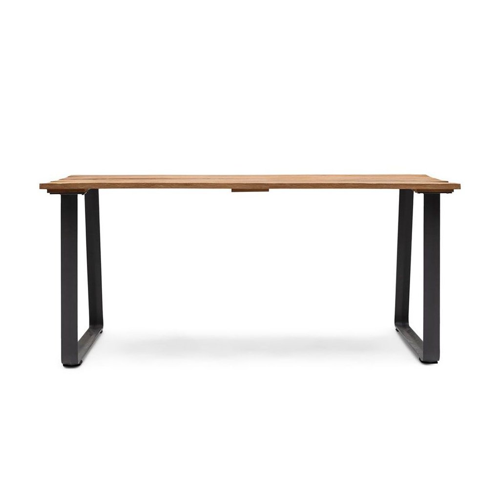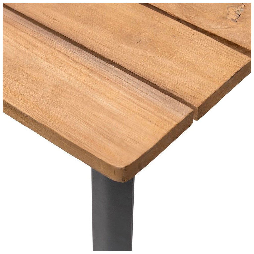 Tento stôl je krásnou kombináciou teakového dreva a pevnej hliníkovej podnože s čiernou práškovou povrchovou úpravou. Industriálne nohy v tvare U, sofistikovaný a vizuálne príťažlivý stôl.