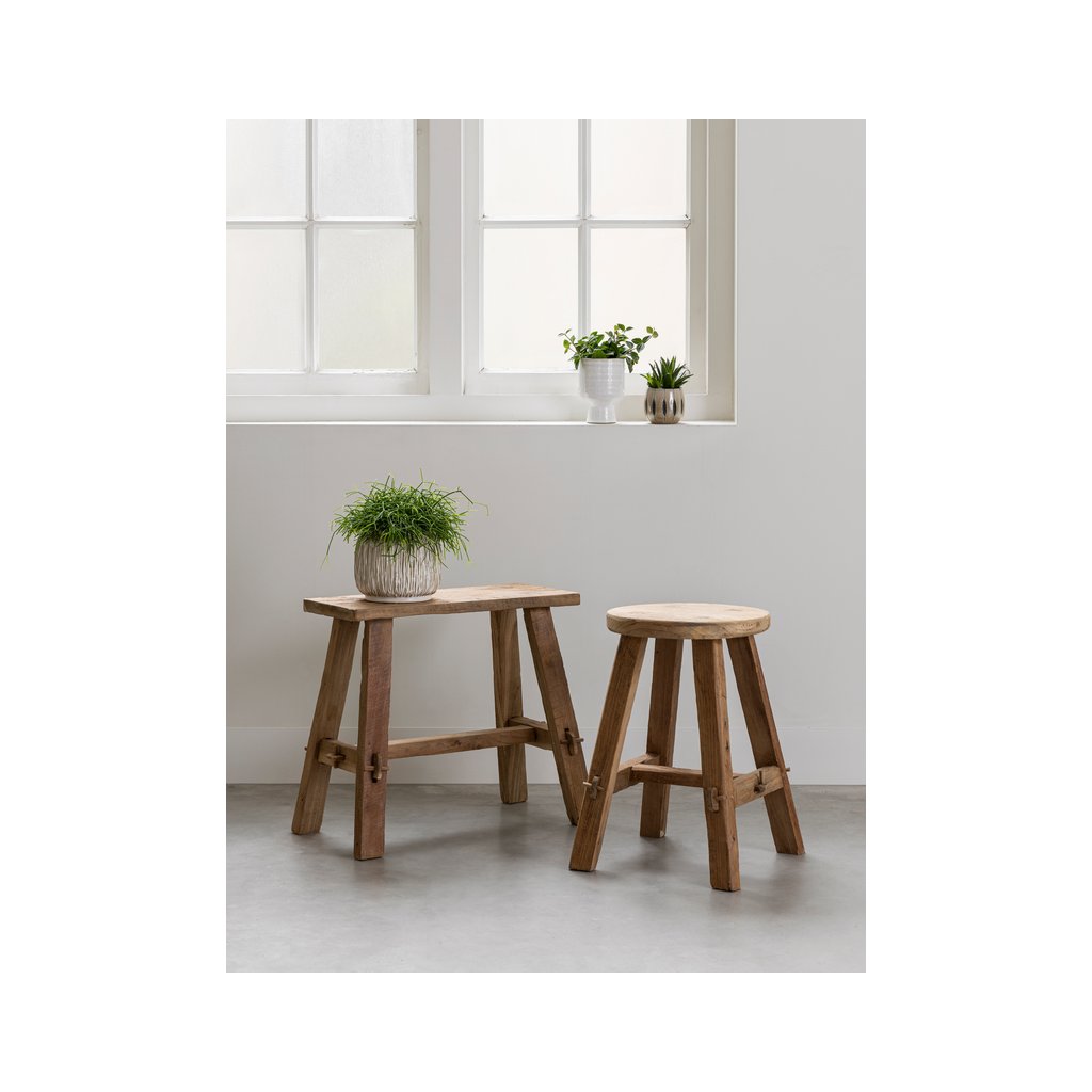Stolička Antiques Rinjani je jedinečný kúsok s nadčasovým dizajnom, ktorý spája prírodnú krásu a tradičné remeslo. Vyrobená z recyklovaného teakového dreva a spracovaná ručnou prácou, vyniká autentickou kresbou a prirodzenými odtieňmi, ktoré robia každý kus originálom. Vďaka svojej pevnej konštrukcii a jednoduchým líniám sa hodí ako praktické sedenie, odkladací stolík alebo dekoratívny doplnok, ktorý dodá interiéru prírodný charakter.Dodatočné parametre