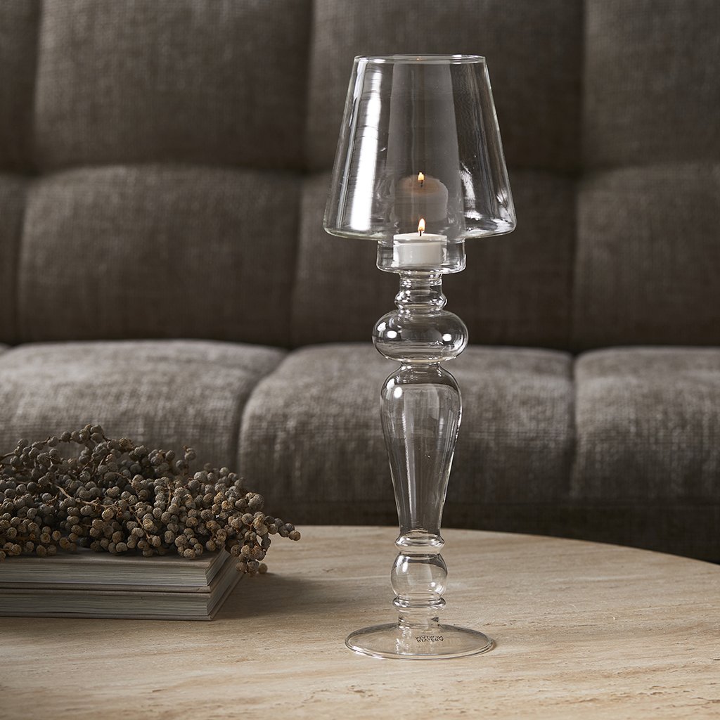 Tento hravý svietnik v tvare stolovej lampy je vyrobený zo skla a dodá vášmu interiéru očarujúci a jedinečný vzhľad. Dizajn vytvára útulnú a hrejivú atmosféru a každú sviečku premení na pôsobivý dekoratívny prvok. Ideálny na vytvorenie atmosféry v každej miestnosti.Dodatočné parametre