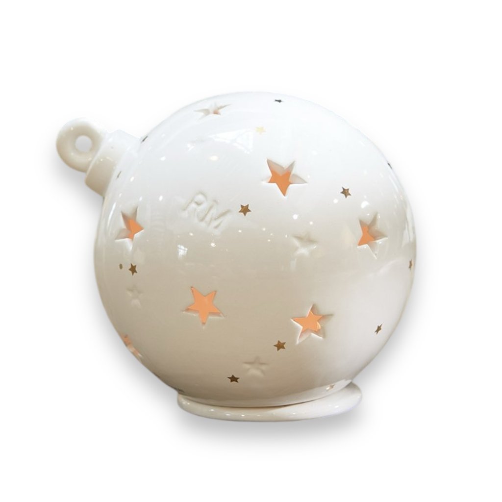 Vytvorte si dokonalú vianočnú atmosféru s týmto krásnym držiakom na čajovú sviečku RM Starry Christmas. Je vyrobený z porcelánu a má tvar slávnostnej vianočnej gule. Malé otvory vytvárajú pri zapálení čajovej sviečky očarujúci vzor hviezdičiek. Atraktívny a hravý doplnok do vašej domácnosti od značky Rivièra Maison.Dodatočné parametre