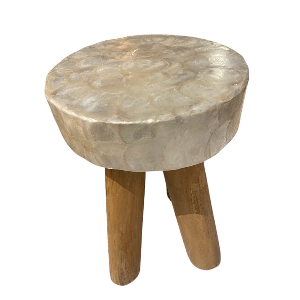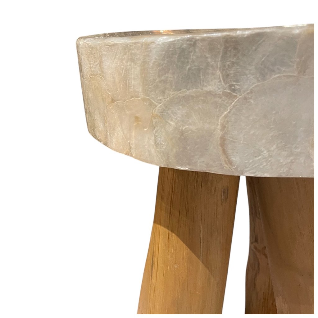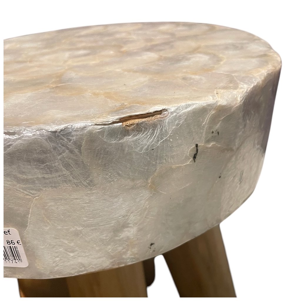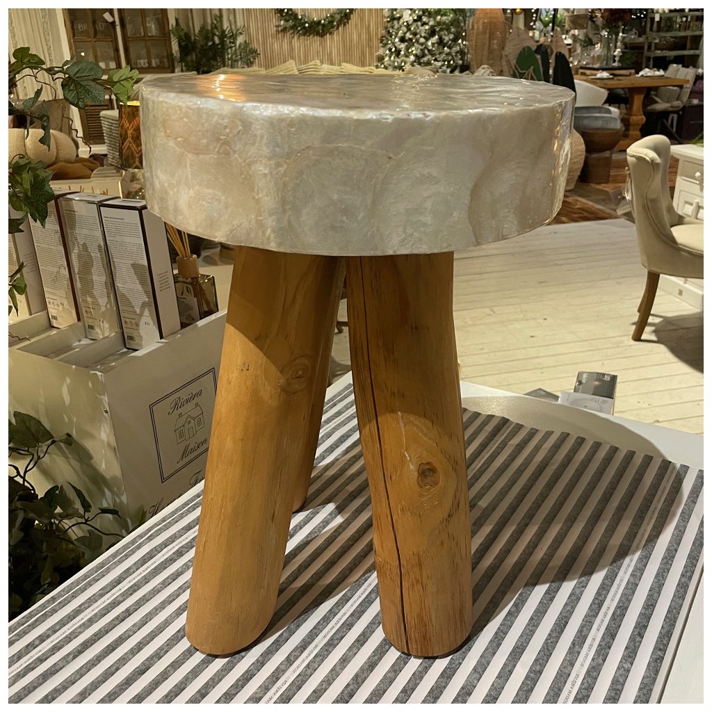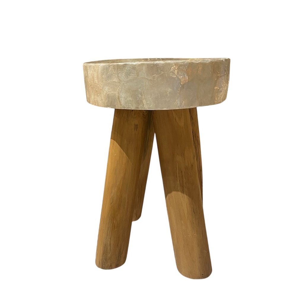 Zaujímavý stolík z masívneho teakového dreva ako podstavec a vrchná doska imitujúca mramor.