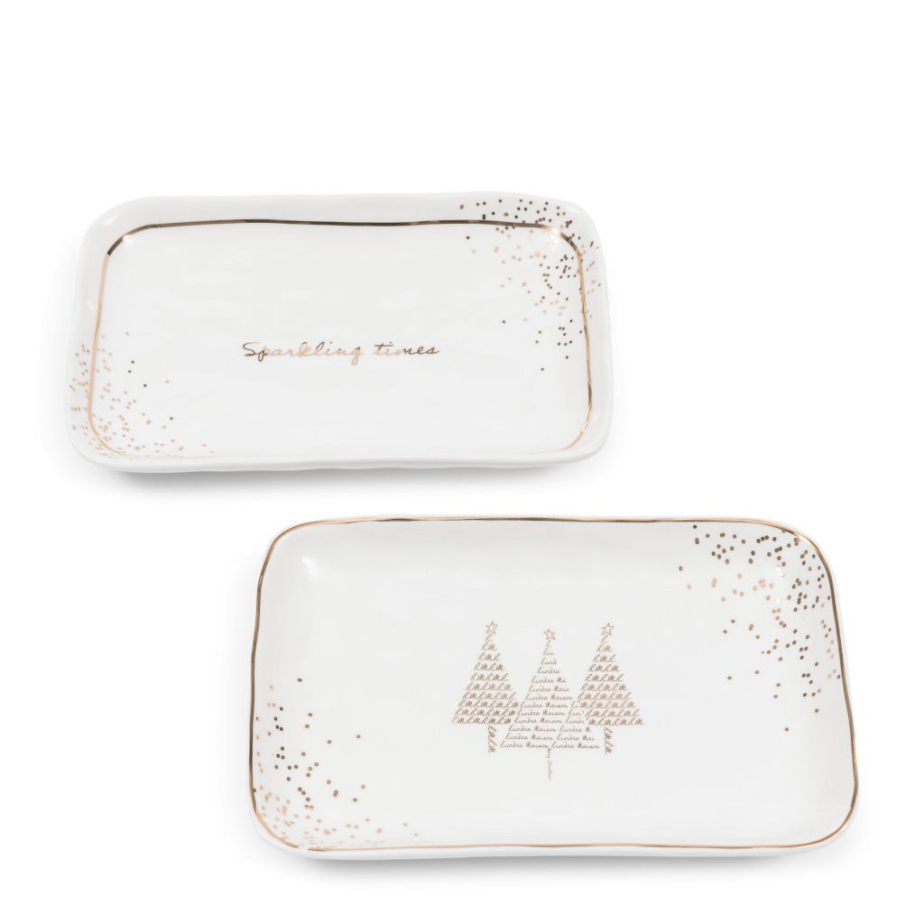 Tieto dva servírovacie taniere sú oba krásne zakončené zlatými akcentmi. Ideálne na servírovanie občerstvenia počas výnimočných príležitostí.