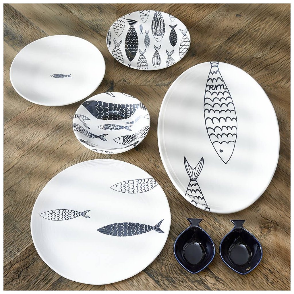 Je to ako rybie reštaurácie pri mori! Naša nová kolekcia riadu dýcha pocitom z mora. Seafood Club Bowl M je stredná misa z bieleho porcelánu s jemnou potlačou tmavé ryby. Perfektné misa na šalát alebo zdravý kúsok ryby. Tento riad je vhodné do umývačky riadu a je vyrábané ručne v Taliansku, vďaka čomu je každý predmet jedinečný.