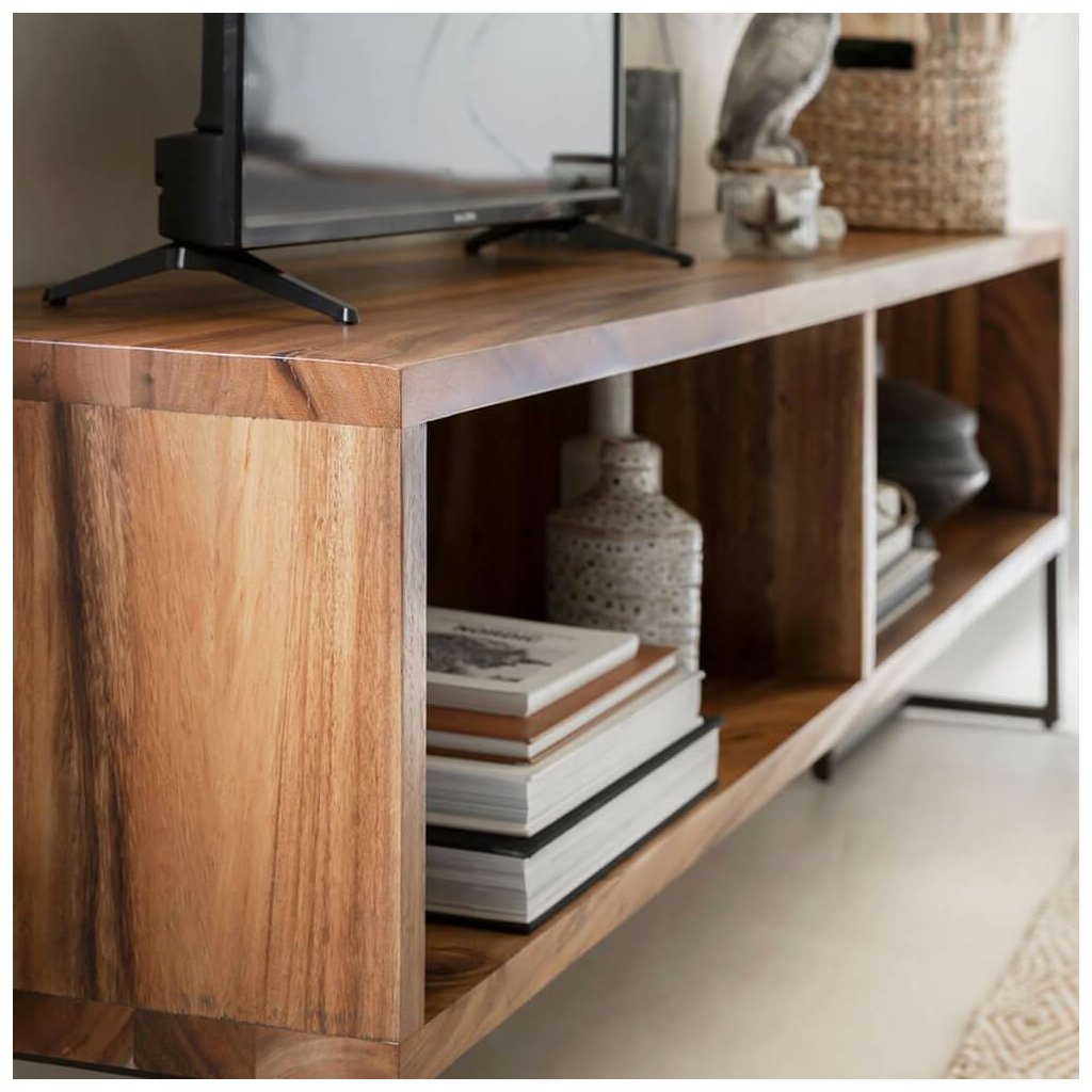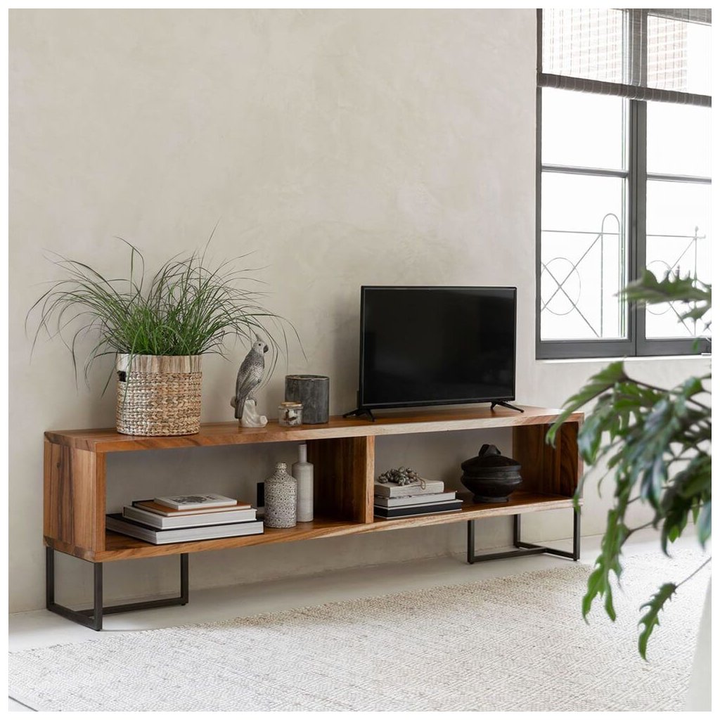 Základom našej kolekcie Flare je masívne drevo Suvar. Drevo je výrazné, s odtieňmi svetložltej a tmavej čokolády, ktoré pripomínajú plamene - odtiaľ pochádza aj jeho názov. Nábytok v tejto kolekcii je kombinovaný s čiernym železom so zlatým leskom.Výsledkom je hladký, žiarivý nábytok, ktorý zateplí váš domov.