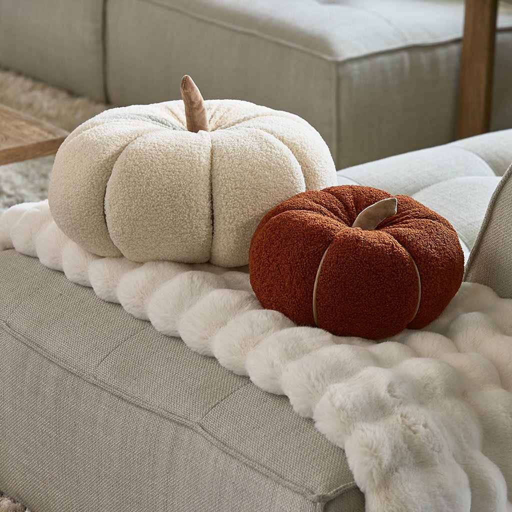 Okamžite si do svojho domova prineste krásny dekoratívny vankúš RM Pumpkin M útulnú jesennú atmosféru u vás doma. Biela bucľatá látka dodáva vankúšu moderný nádych. Vankúšik je vrátane výplne a má rozmery 42x17 cm.
