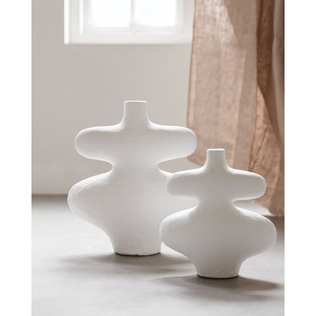 Váza La Femme je jedinečný dekoratívny prvok, ktorý zaujme svojím originálnym tvarom a minimalistickým dizajnom. Vyrobená z fiber cementu, vyniká pevnosťou a jemnou povrchovou štruktúrou, ktorá pôsobí moderne aj nadčasovo. Každý kus prináša do interiéru sofistikovaný charakter a hodí sa ako samostatná dekorácia aj ako štýlový doplnok pre kvety či sušené aranžmány. Váza je dostupná v dvoch veľkostiach, ktoré je možné kombinovať pre ešte výraznejší efekt.Dodatočné parametre