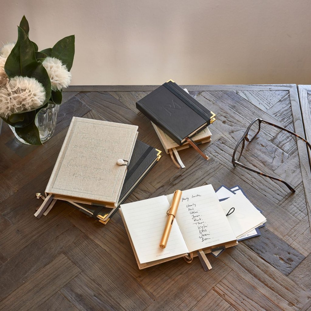 Hovorí sa, že spisovateľ žije večne, ale najprv si musíte robiť poznámky do zápisníka Monogram Moments A6. Pevná väzba so zlatými rohmi a monogramom RM. Stuhy vo vnútri vám pripomenú, kde ste skončili, alebo si zaznačíte dôležité poznámky.S linkovaným papierom.