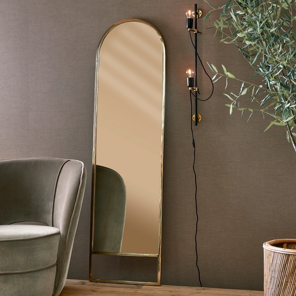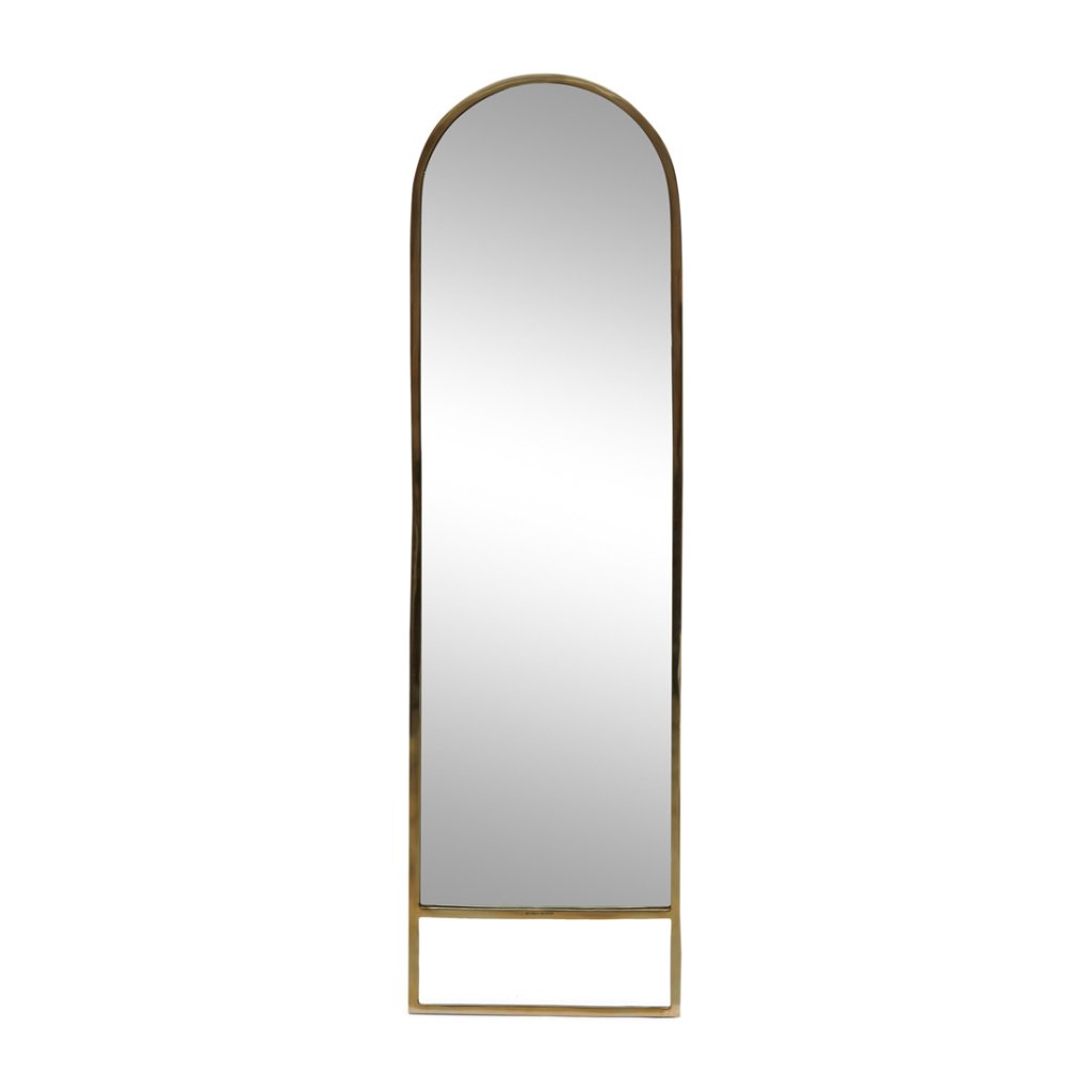 Potrebujete poslednú kontrolu pred odchodom? Zrkadlo Sardinia v celej dĺžke vám zaručí, že budete vyzerať čo najlepšie. Hliník v jemnej zlatej farbe je ručne ohýbaný okolo skla zrkadla. Žiadne dve zrkadlá nie sú rovnaké! Každé zrkadlo má svoje vlastné krivky a nedokonalosti, vďaka čomu je 100 % jedinečné.